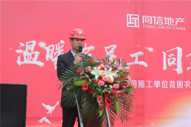 捐贈儀式上,同信地產為每戶貧困農民工捐贈1萬元,
