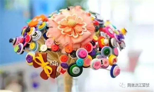就這樣,一束色彩繽紛的紐扣花,