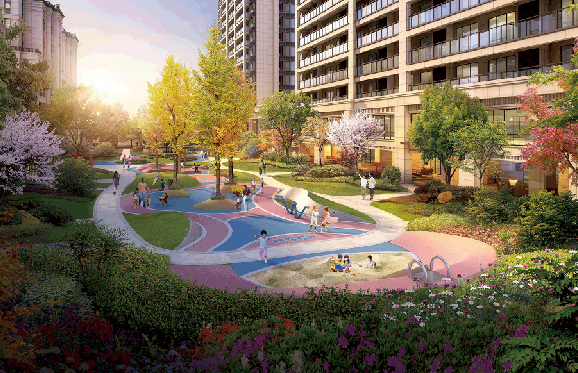 從社區(qū)大門、到前場(chǎng)空間、軸線花園、會(huì)客空間、兒童樂(lè)園層層遞進(jìn),形成“一軸五進(jìn)”的居住格局,營(yíng)造出多層次歸家風(fēng)景;“落英繽紛”——景觀中軸 兩側(cè)為小區(qū)綠植景觀布局,沿著小區(qū)園路,我們引入草坪、花卉、灌木、喬木等多種植物搭配種植,打造“春有繁花、夏有濃蔭、秋有紅葉、冬有寒梅”的花園 式景觀。而且我們同信江上桃源項(xiàng)目依然延續(xù)了世博院項(xiàng)目樓頂空中花園的設(shè)計(jì),最大化的給業(yè)主提供更多鄰里交流、親子互動(dòng)、朋友聚會(huì)的空間。